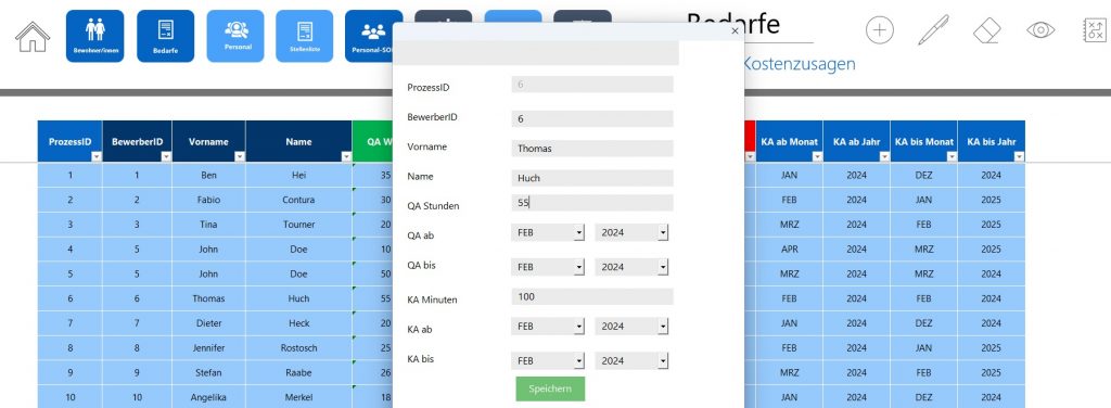 - Ermittlung von Stellenanteilen (IST) der vorhandenen Belegschaft über benutzerfreundliche Formulare.